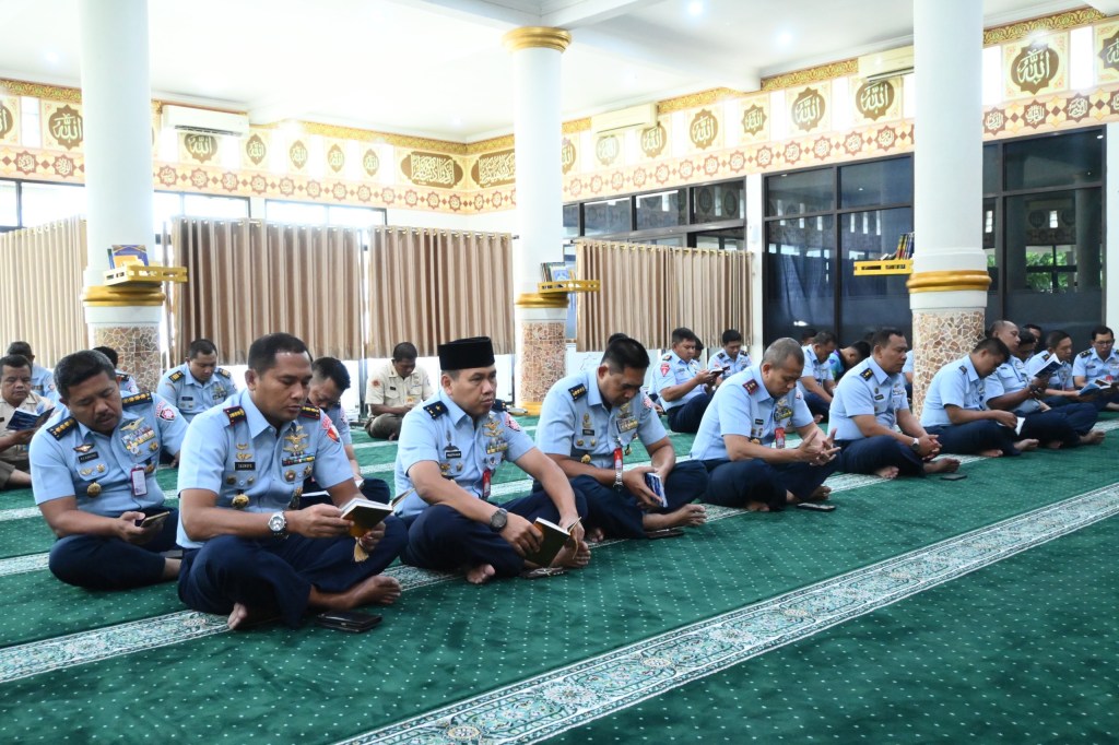Doa bersama dipimpin oleh staf Bintal Koops Udara I Lettu Sus Ainur Rohman A.S., S.H., dan PNS IV/a Drs. M. Ibnu Rohmad.