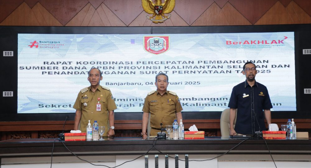 Banjarbaru – Pemerintah Provinsi Kalimantan Selatan menggelar Rapat Koordinasi (Rakor) Percepatan Pembangunan Sumber Dana APBN Kalsel dan Penandatanganan Surat Pernyataan TA 2025 di ruang rapat H Aberani Sulaiman Setda Provinsi Kalsel di Banjarbaru, Selasa (4/2/2025).