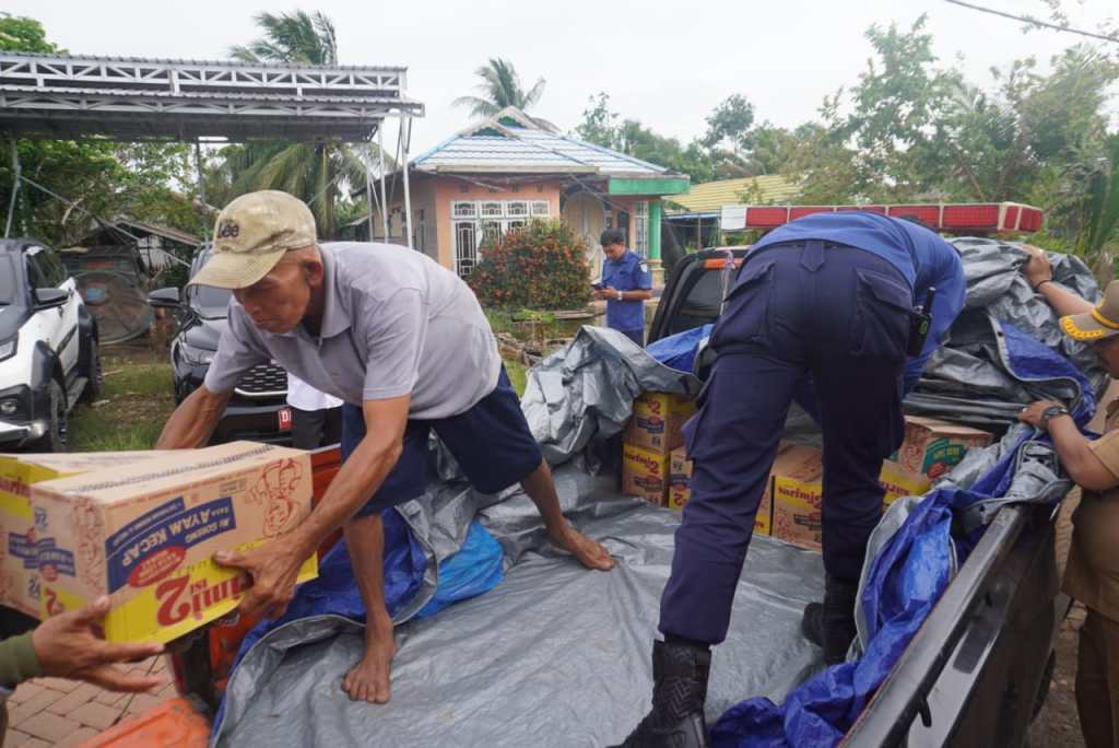 Bantuan disalurkan melalui Dinas Pemadam Kebakaran dan Penyelamatan (DPKP) kolaborasi dengan Badan Penanggulangan Bencana Daerah (BPBD) serta Dinas Komunikasi, Informatika, Statistik dan Persandian (DKISP), di Posko Siaga Bencana Desa Paku Alam, Kecamatan Sungai Tabuk, Senin (10/02/2025) sore.