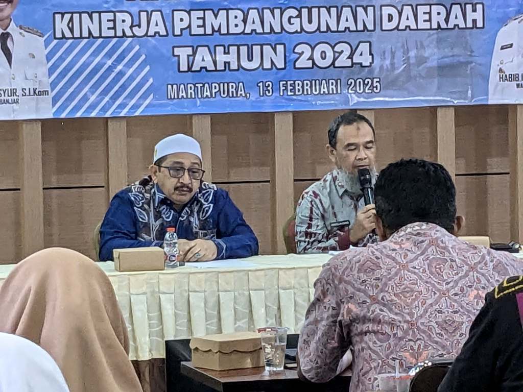 MARTAPURA – Pemerintah Kabupaten Banjar melalui Badan Perencanaan Pembangunan Daerah, Penelitian dan Pengembangan (Bappedalitbang) menggelar Rapat Evaluasi Kinerja Pembangunan Daerah Tahun 2024, di Aula Baiman Martapura, Kamis (13/2/2025) pagi.