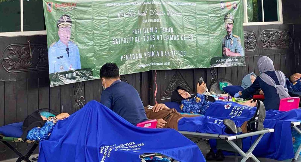 Banjarbaru – Memperingati HUT Satpol PP ke-75, Satlinmas ke-63 dab Pemadam Kebakaran, Pemprov Kalsel menggelar Bakti sosial donor darah di Kantor Gubernur Kalsel pada Senin (17/2/2025).