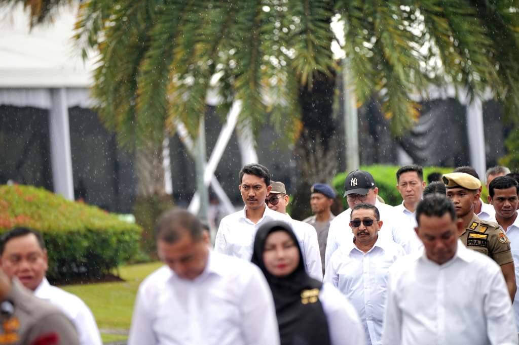 Kemudian, bersama kepala daerah lainnya mengikuti long march dari Monas menuju halaman Istana Kepresidenan RI diiringi marching band.