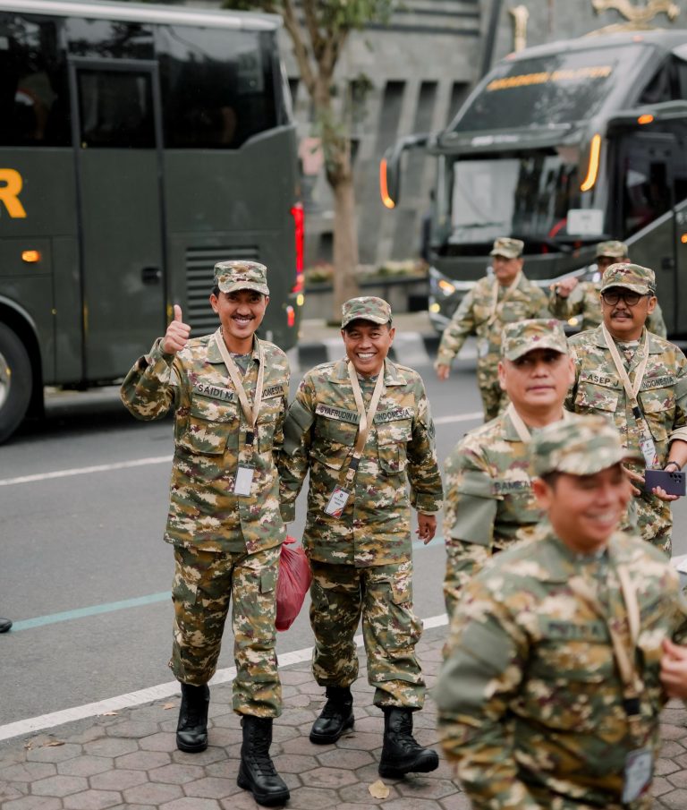 Mengenakan baju loreng, celana, sepatu boot, dan topi ala militer Saidi Mansyur bersama ratusan kepala daerah lainnya menjalani tradisi semi-militer dalam agenda retreat ini. Ia terlihat cukup semangat saat pembukaan kegiatan berlangsung.