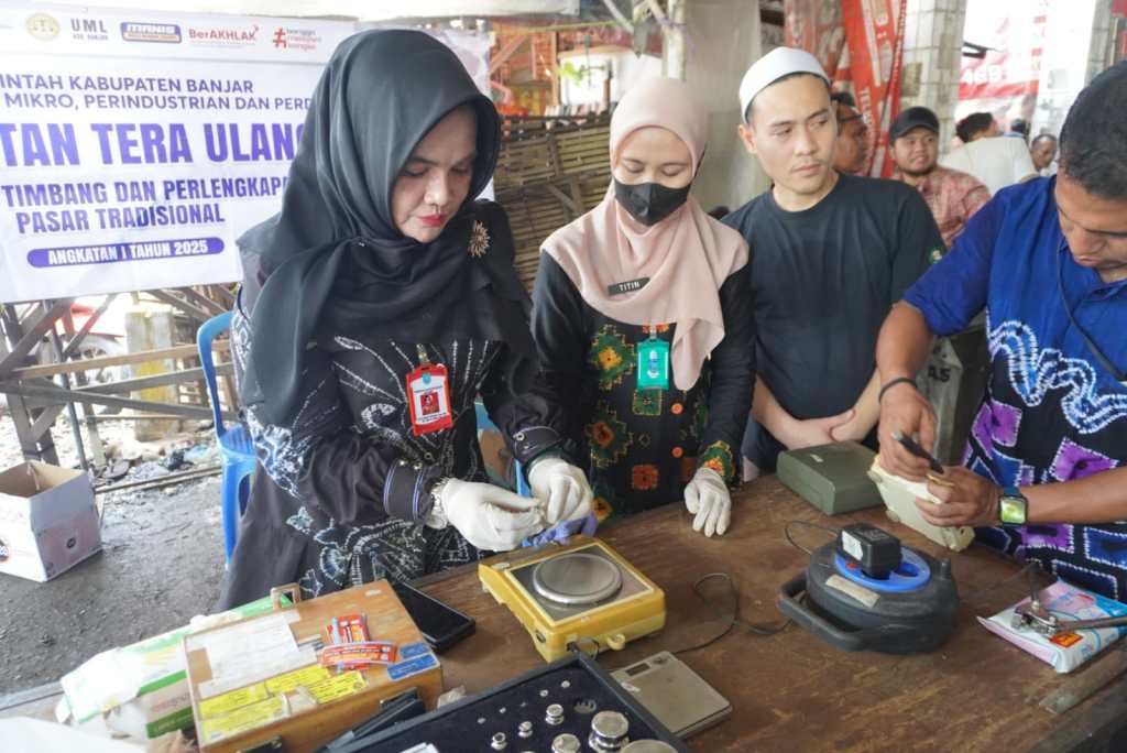 MARTAPURA – Dinas Koperasi Usaha Mikro Perindustrian dan Perdagangan (DKUMPP) Kabupaten Banjar melalui Bidang Kemetrologian dan Bina Usaha menggelar tera ulang alat Ukur Takar, Timbang dan Peralatannya (UTTP), di Pasar Niaga Martapura, Kamis (27/2/2025) pagi.