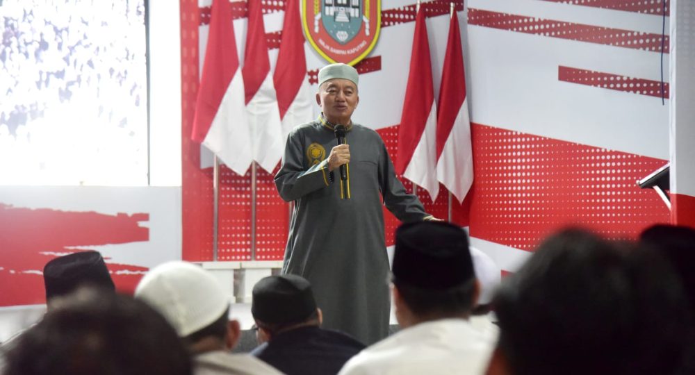 Usai shalat tarawih, Gubernur H Muhidin pun menceritakan pengalamannya selama mengikuti pembekalan dan pendidikan semi militer yang berlangsung dari tanggal 21 – 28 Pebruari 2025 di Akademi Militer Magelang itu.