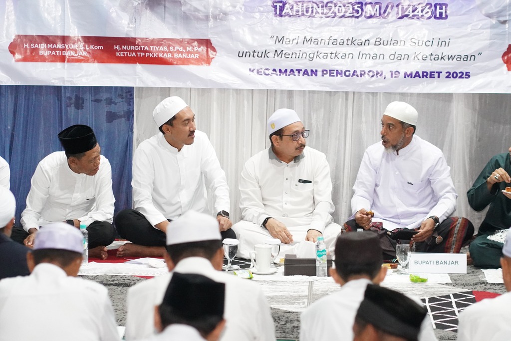 PENGARON – Safari Ramadan ke-16 Bupati Banjar H Saidi Mansyur dan wakilnya Habib Idrus Al Habsyi beserta jajaran silaturahmi dengan masyarakat di Masjid Jami Jami’atul Quro, Desa Alimukim RT 01 Kecamatan Pengaron, Rabu (19/3/2025) sore.