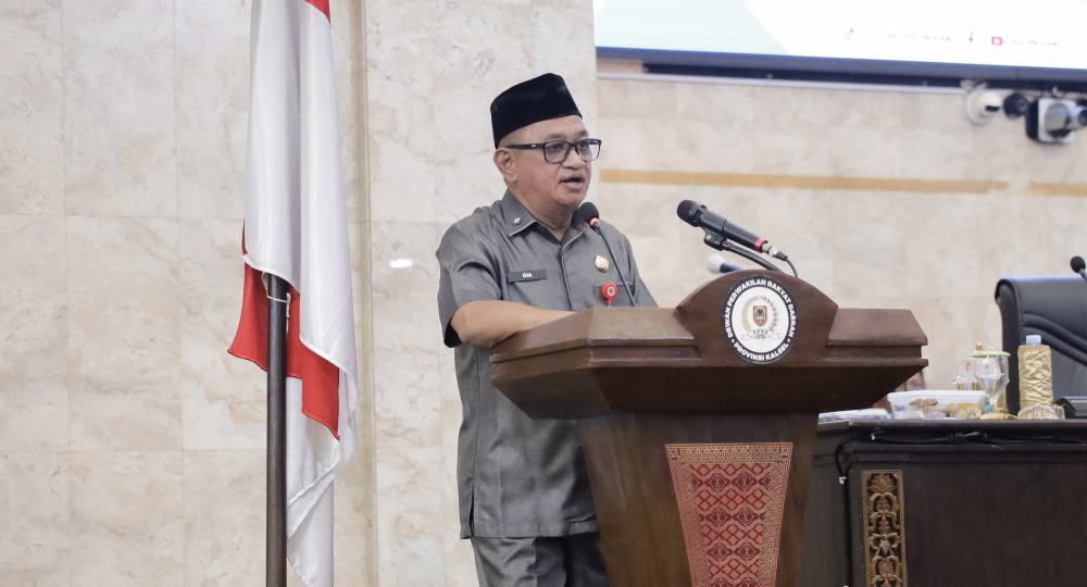 Banjarmasin – Gubernur Kalimantan Selatan, H. Muhidin diwakili Asisten Administrasi Umum, Ahmad Bagiawan menghadiri Rapat Paripurna DPRD Provinsi Kalimantan Selatan, yang bertempat di Ruang Rapat Paripurna H. Mansyah Addrian Gedung DPRD Provinsi Kalsel, di Banjarmasin, Selasa (20/5/2025).