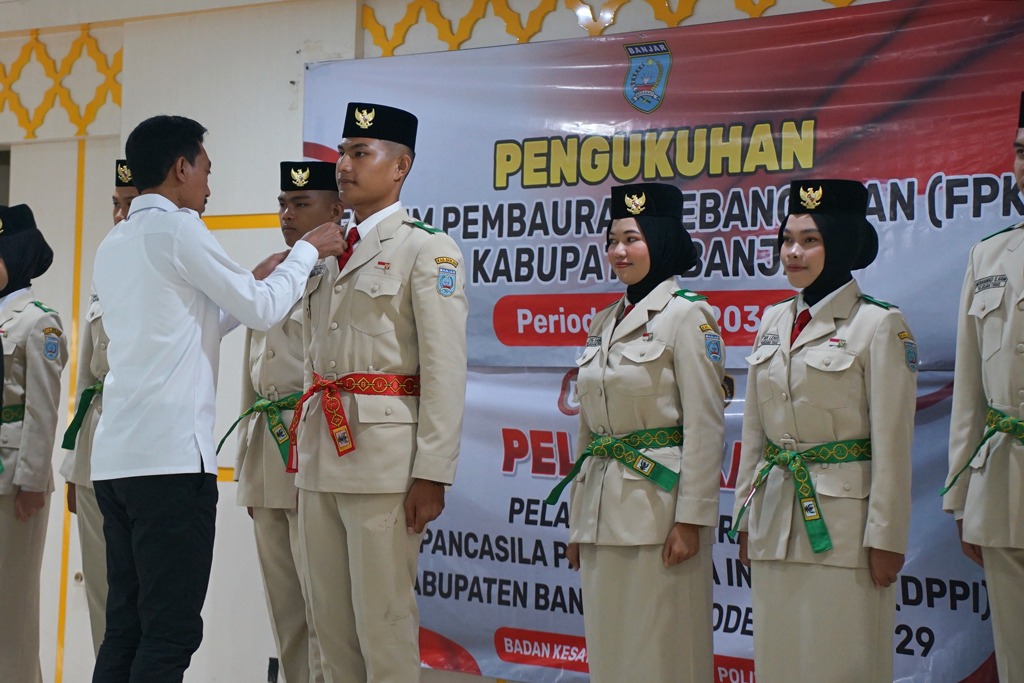 MARTAPURA – Bupati Banjar H Saidi Mansyur mengukuhkan Dewan Penasehat dan Pengurus Forum Pembauran Kebangsaan (FPK) serta melantik Pelaksana Duta Pancasila Paskibraka Indonesia (DPPI) periode 2025–2029, di Guest House Sultan Sulaiman, Martapura, Minggu (1/6/2025) pagi.