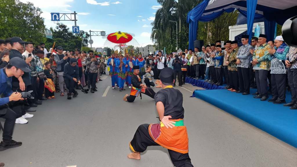 MARTAPURA – Bupati Banjar H. Saidi Mansyur bersama Wakil Bupati Said Idrus Al Habsyi secara resmi membuka Pawai Ta’aruf sebagai tanda dimulainya rangkaian Musabaqah Tilawatil Qur’an (MTQ) Nasional ke-36 Tingkat Provinsi Kalimantan Selatan di Kabupaten Banjar, di Jl. A. Yani, Depan Taman CBS, Martapura, Sabtu (21/6/2025) siang.