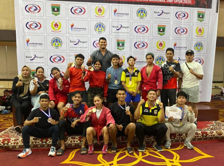 PADANG – Atlet-atlet muda Kalimantan Selatan kembali menorehkan prestasi membanggakan di tingkat nasional. Dalam ajang Kejuaraan Nasional (Kejurnas) Sambo Remaja dan Junior 2025, yang diselenggarakan di Universitas Negeri Padang, Sumatera Barat, Tim Sambo Junior Kalimantan Selatan berhasil meraih total 14 medali, terdiri dari 6 medali emas, 6 medali perak, dan 2 medali perunggu.