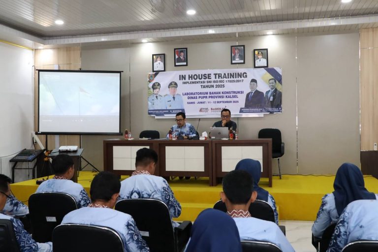 BANJARMASIN – Dalam upaya memperkuat sistem manajemen mutu laboratorium serta meningkatkan kepercayaan publik terhadap hasil uji konstruksi, Laboratorium Bahan Konstruksi Dinas Pekerjaan Umum dan Penataan Ruang (PUPR) Provinsi Kalimantan Selatan menggelar In House Training Implementasi SNI ISO/IEC 17025:2017, di Banjarmasin, Kamis (11/9/2025).