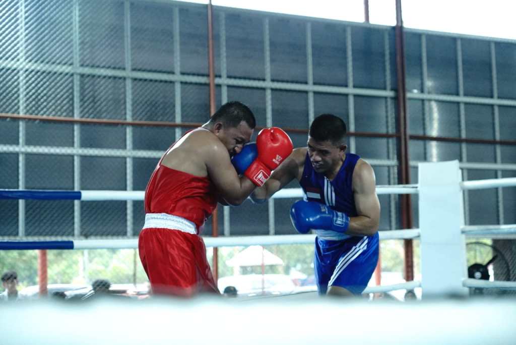 PELAIHARI – Cabang olahraga tinju di ajang Pekan Olahraga Provinsi (Porprov) XII Kalsel berlangsung seru, di Gedung Serbaguna RTH Kijang Mas, Pelaihari, Sabtu (25/10/2025).