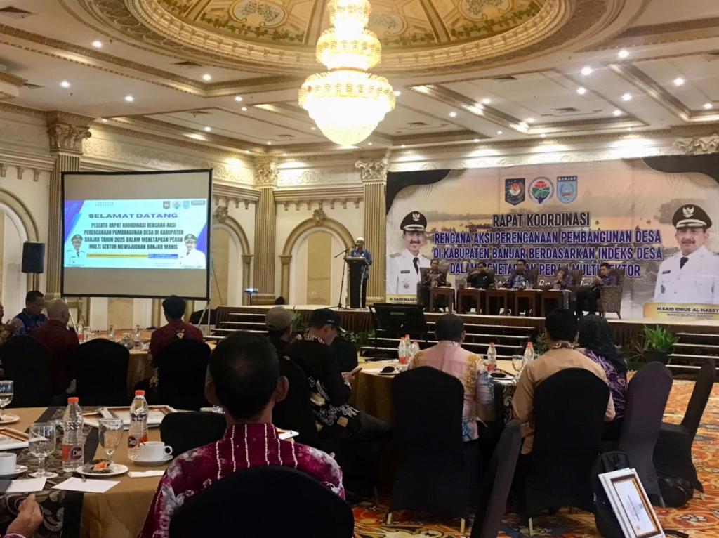 BANJARBARU – Pemerintah Kabupaten Banjar mengadakan rapat koordinasi rencana aksi perencanaan pembangunan desa di Kabupaten Banjar berdasarka indeks desa dalam menetapkan peran multi sektor yang dilaksanakan oleh Dinas Pemberdayaan Masyarakat dan Desa (PMD), di Grand Qin Hotel, Banjarbaru, Kamis (13/11/2025).