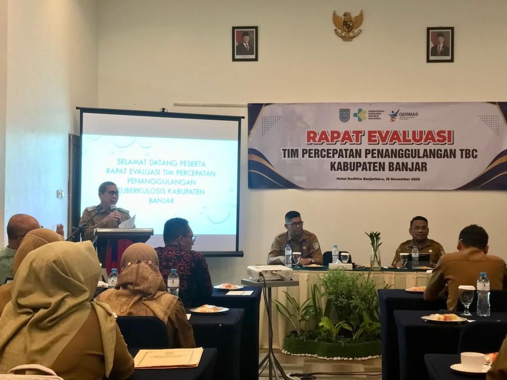 BANJARBARU – Pemerintah Kabupaten Banjar melalui Dinas Kesehatan lakukan Rapat Evaluasi Tim Percepatan Penanggulangan Tuberkulosis (TBC) sebagai komitmen untuk mengatasi masalah TBC di Kabupaten Banjar. Acara digelar di Hotel Rodhita, Banjarbaru, Selasa (18/11/2025).