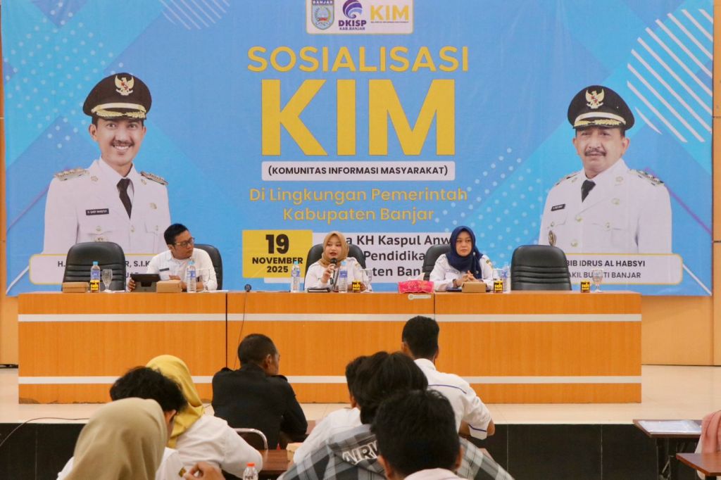 MARTAPURA – Dinas Komunikasi, Informatika, Statistik, dan Persandian (DKISP) Kabupaten Banjar menggelar Sosialisasi Komunitas Informasi Masyarakat (KIM), di Aula KH Kasyful Anwar, Bincau, Martapura, Rabu (19/11/2025) pagi.