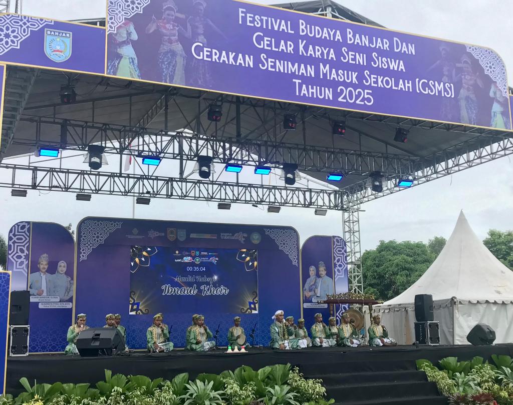 MARTAPURA – Festival budaya Banjar dan gelar karya seni siswa atau gerakan seniman masuk sekolah (GSMS) tahun 2025 resmi digelar. Acara dibuka langsung oleh Kepala Dinas Kebudayaan, Pemuda, Olahraga, dan Pariwisata (Disbudporapar) Kabupaten Banjar, H. Irwan Jaya, ST., MT, yang berlangsung di Halaman Kantor Kecamatan Martapura, Kamis (20/11/2025).