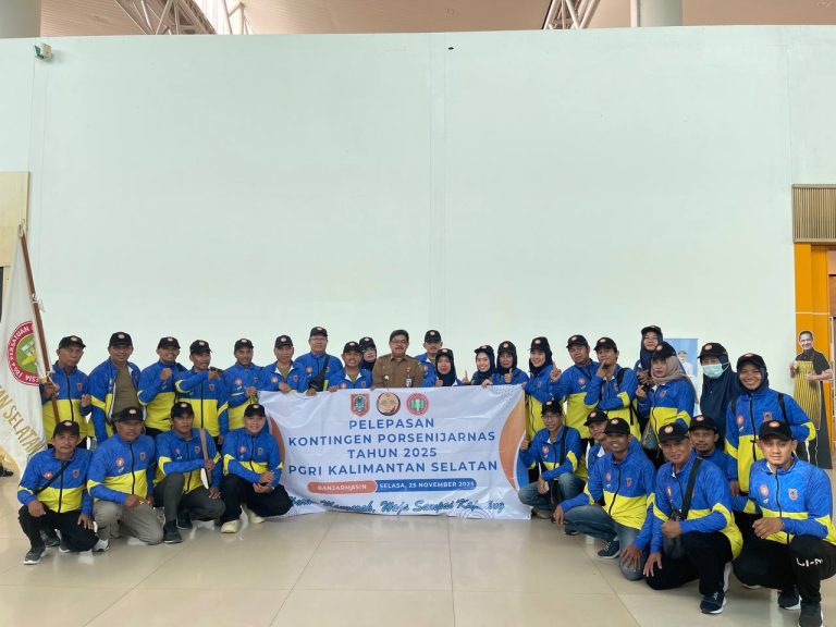 BANJARBARU – Gubernur Kalimantan Selatan (Kalsel), H. Muhidin secara resmi melepas kontingen Persatuan Guru Republik Indonesia (PGRI) Kalsel yang akan berlaga pada Pekan Olahraga, Seni, dan Pembelajaran Tingkat Nasional (PORSENIJARNAS) 2025 di Bandung, Jawa Barat, 25–28 November 2025.
