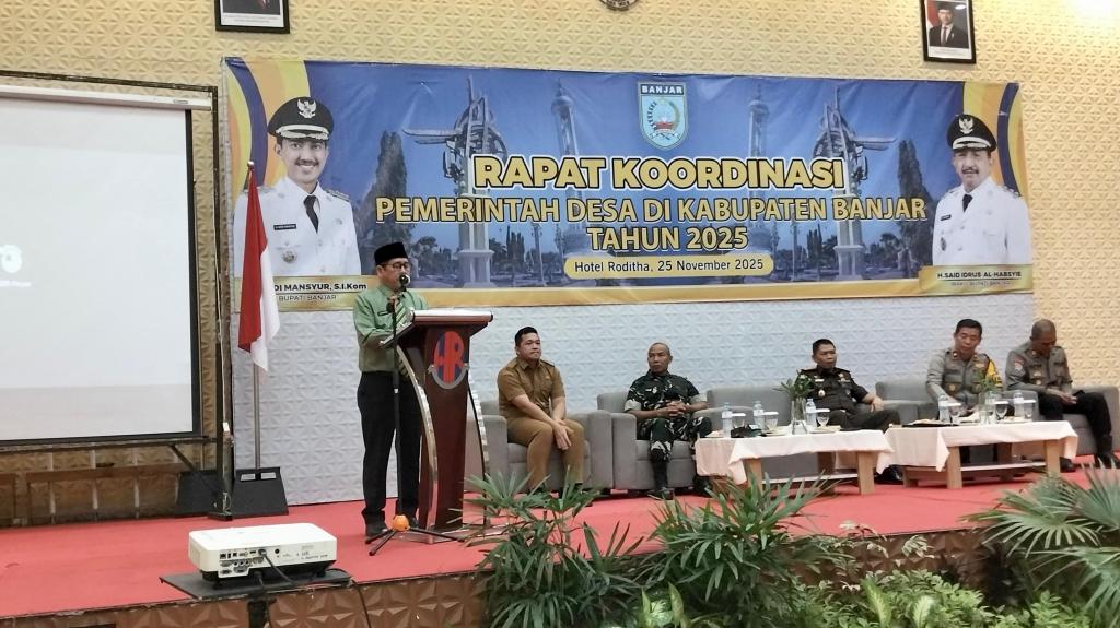 BANJARBARU – Pemerintah Kabupaten Banjar melalui Dinas Pemberdayaan Masyarakat dan Desa (DPMD) menggelar Rapat Koordinasi Kepala Desa atau Pembakal se-Kabupaten Banjar, di Hotel Rodhita, Banjarbaru, Selasa (25/11/2025).