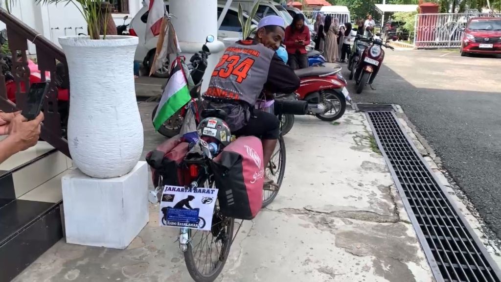“Biar beda saja. Kalau kebanyakan orang pakai motor atau kendaraan, saya tetap pilih sepeda. Di jalan ada capek, ada sedih juga,” kata Fahmi.