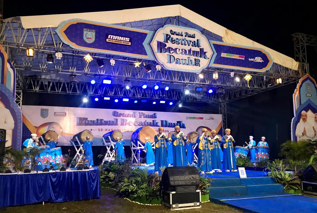 MARTAPURA – Grand Final Festival Becatuk Dauh se-Kabupaten Banjar 2026 berlangsung meriah. Setiap grup tampil maksimal untuk memberikan penampilan terbaiknya. Antusiasme penonton terlihat jelas saat mereka menyaksikan setiap penampilan di Alun-Alun Ratu Zalecha, Martapura, Rabu (4/3/2026) malam.